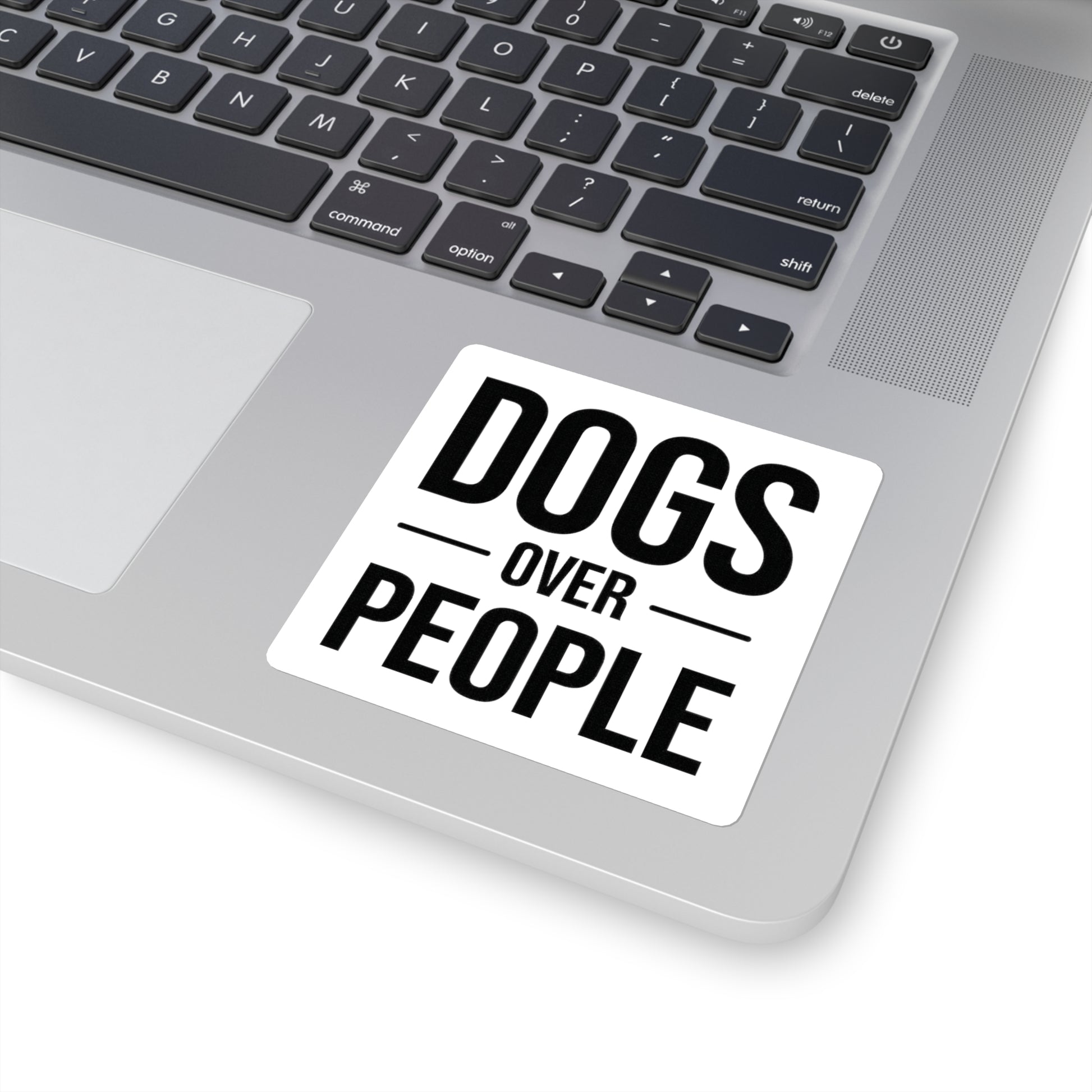 Dogs Over People Square Sticker — Bold Black & White Pet Lover Decal
